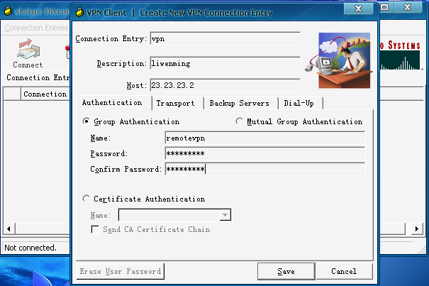 在大中型企业中,往往由于业务的需要,员工需要长期出差办公或者因各方面原因需要在家办公。同时大家又想随时访问公司总部资源,并且,保证数据在传输过程中是保密的,不被第三方截取篡改。种种原因引起我们的思考,由此采用了目前应用的一项安全技术Ezvpn(基于ipsec vpn)。每个远程用户通过cisco vpn client 拨号软件采用不同的用户分发策略,远程连上总公司,访问公司资源。
