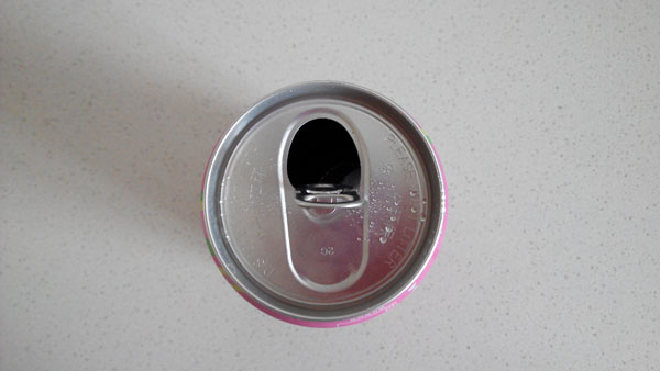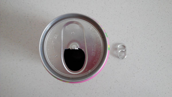 制作步骤五:沿着易拉罐罐圈拉开,但保留罐口连接处