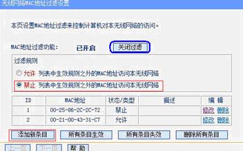 检查路由器是否设置无线MAC地址过滤,使用网线连接路由器进入管理界面,打开无线设置—无线MAC地址过滤查看,如果启用,可以关闭或者添加该无线网卡的MAC地址;