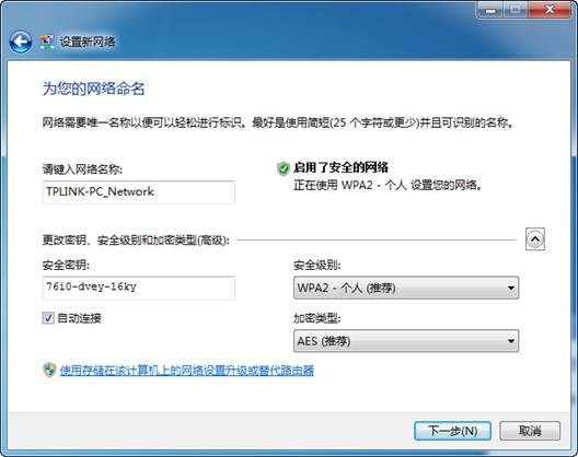 至此您的电脑已经无线连接上了TL-WR841N,并且已经给路由器设置了WPA2-PSK AES级别的无线加密。