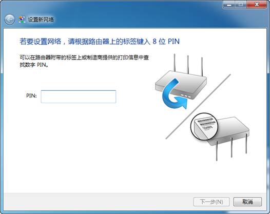 3. 输入无线路由器底面板锡标上的PIN码,点击“下一步”,弹出下一个设置页面,如下图所示。