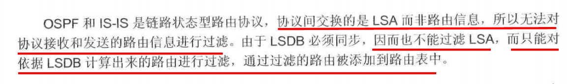 使用这种过滤方法后,对LSA的传递没有影响,所以只会影响本地的路由表,不会影响其它路由器的路由表。