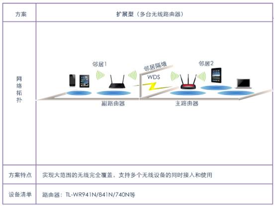 针对同一层仅相隔一堵墙的邻居用户,使用无线路由器WDS扩展无线网络。