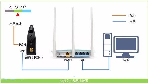 3、检查下tplink路由器中的网线连接是否正确,连接错误,则会出现tplogin.cn登录不了的问题。tplink路由器、猫(宽带网线)、电脑 之间的正确连接方式:把从猫上接出来的网线(入户的宽带网线),插在tplink路由器的WAN接口。tplink路由器中除WAN口外的任意一个接口,都可以用来连接电脑,连接的示意图如下。