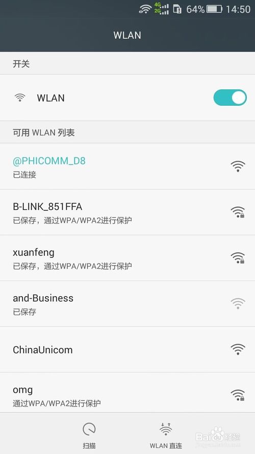 斐讯K2路由器连接好以后我们使用手机或者电脑就可以查找并连接上名为@PHICOMM_D8的无线网了。