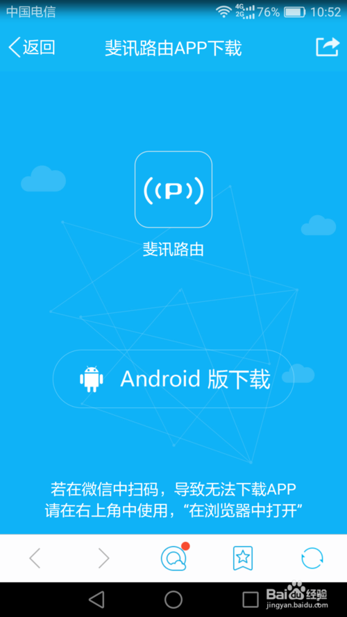 使用手机扫描斐讯K2路由器上面的二维码,下载安装斐讯路由app,打开软件以后输入默认密码admin进入。