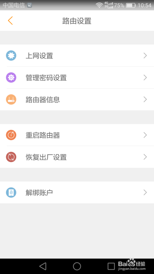 在斐讯路由app的路由设置中我们可以选择上网设置、管理密码设置、重启路由器以及恢复出厂设置等。