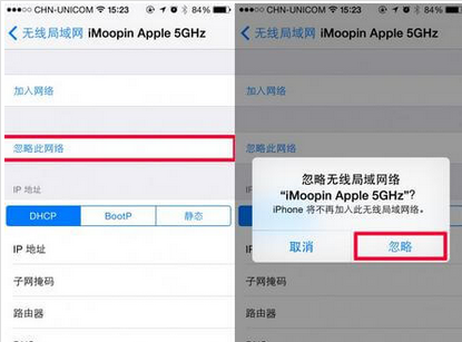 点击设定—-无线网络—-点击连接符号出现异常的wifi网络右边的“>”—挑选“删掉互联网”,随后点击再度联接到该wifi网络,并再次键入wifi网络登陆密码,便于手机可以得到新的IP地址并一切正常联接。