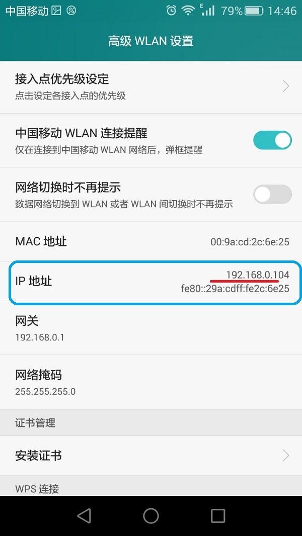 在开启后记得你的ip多少钱(要是记牢水平线上的就可以了,方式:192.168.0.1或是看网关ip,有的手机上是路由器)
