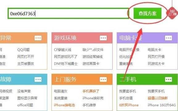 3、随后输入代码0xe06d7363进行搜索,并点击“查找方案”。