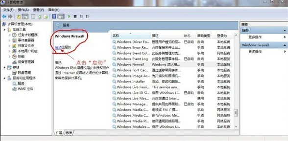 此时可能出现“无法启用共享访问 错误代码 ”,遇到此情况时,右键单击桌面上的“计算机”,依次选择“管理”→在左边的菜单栏中双击打开“服务和应用程序”菜单→选择“服务”→在右边找到并选择"Windows Firewall” → 点击“启用此服务”,然后再进行一次上边这段中的操作即可。一般都能解决以上问题。
