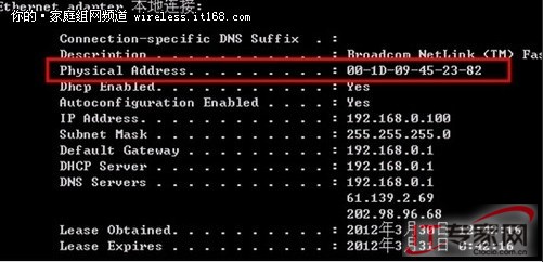 此外,用户还可以点击任务栏的“开始”->运行->在弹出的“运行”窗口文本框内输入“cmd”,然后单击“确定”按钮;在命令窗口中输入“ipconfig/all”后回车,此时在显示的结果中同样可以找到MAC地址。