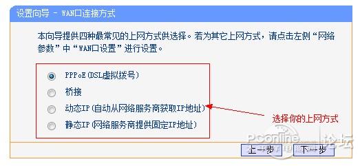 选择上网方式,拨号用户就选择第一项吧