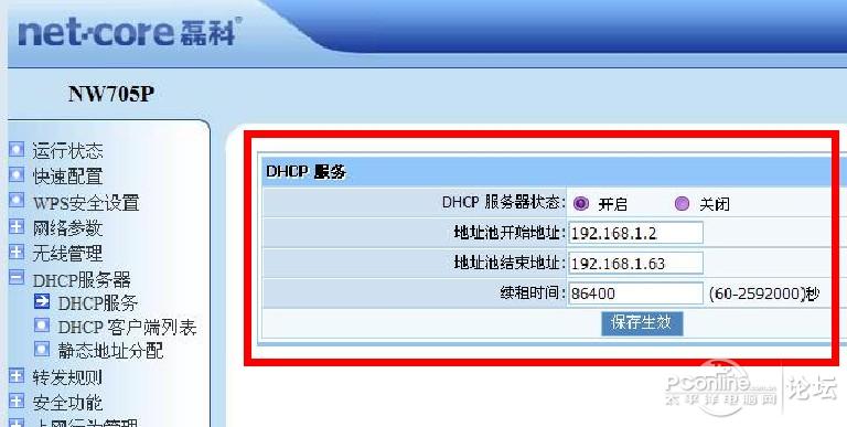 对于这种现象的话,很容易出现网络冲突现象,我们需要将这种冲突排除。怎么排除法?这就是我们需要设置的DHCP设置界面